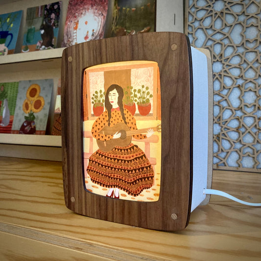 Take your favourite regular greetingcards to the next level with our Postcardlamp. Just slide them in from above end enjoy the warm glow. Available in Maple, Oak and Walnut.